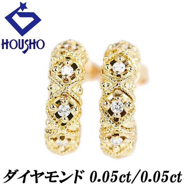 ダイヤモンド ピアス K18イエローゴールド ロープ フープ【中古】【903739】