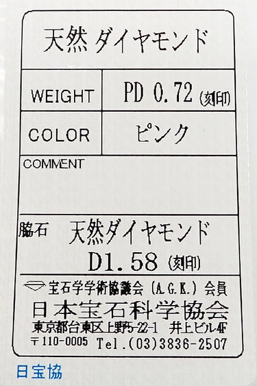 ピンクダイヤモンド 色:青みのピンクの色合い