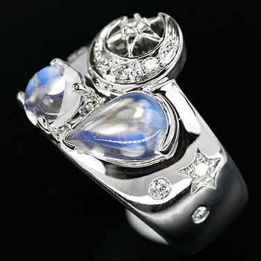 POLA Labradorite 2.00ct Diamond K18WG Lavidor de Star Moon Thick Wide POLA | 18K Diamond Gorgeous Luxurious Gorgeous Unique Cute Stylish [Used] [SH105569]