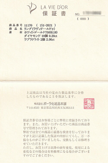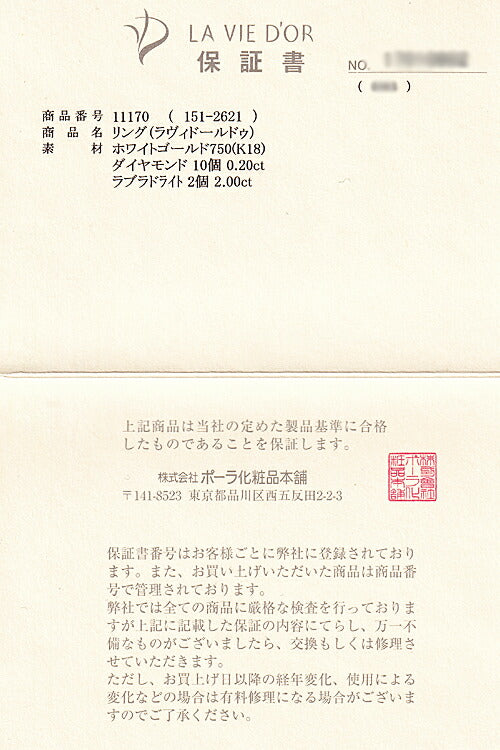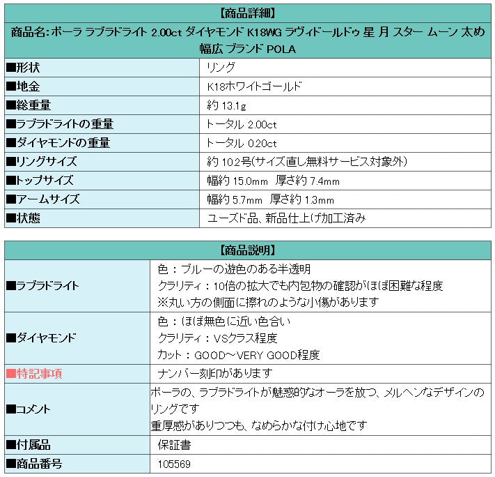 Product name: POLA Labradorite 2.00ct Diamond K18WG Lavidor de Star Moon Thick Wide Brand POLA
