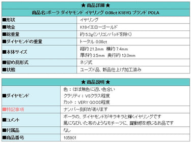 Product name: POLA Diamond Earrings 0.08ct K18YG Brand POLA