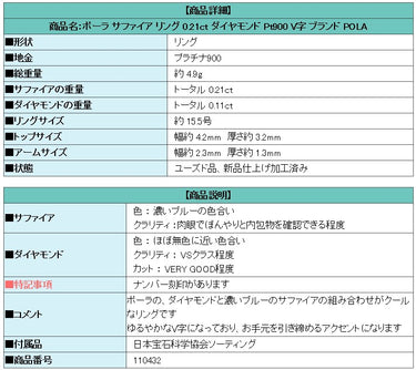 Product name: POLA Sapphire Ring 0.21ct Diamond Pt900 V-shaped Brand POLA