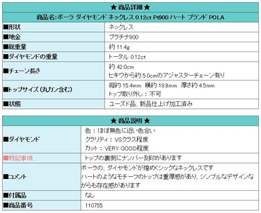 Product name: POLA Diamond Necklace 0.12ct Pt900 Heart Brand POLA