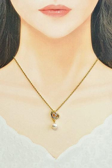 POLA Akoya pearl necklace 8.3mm diamond K18YG heart brand POLA | 18K Akoya pearl white pearl Japanese pearl diamond elegant cute stylish [Used] [SH112031]