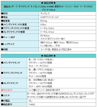 Product name: POLA Diamond Necklace 0.30ct K18WG Deformed Cut Fancy Cut Marquise Cut Brand POLA