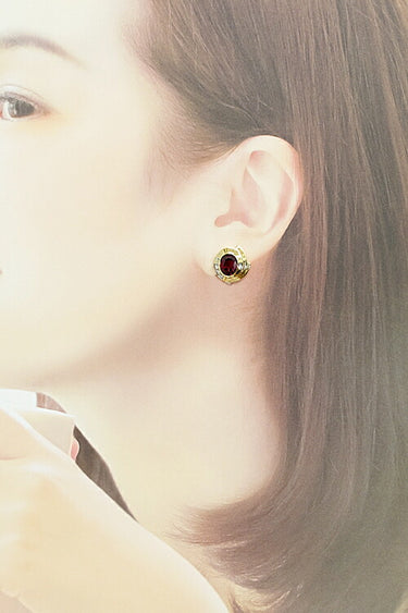 These elegant earrings are set with rhodolite garnets from Paula, with a deep, beautiful color like lipstick.