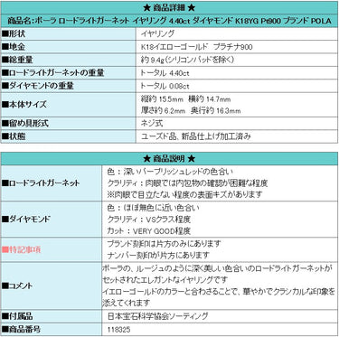 Product name: POLA Rhodolite Garnet Earrings 4.40ct Diamond K18YG Pt900 Brand POLA
