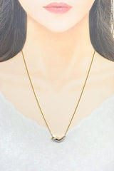 A modern necklace from Paula featuring a straight V-shaped motif and diamonds set in it.