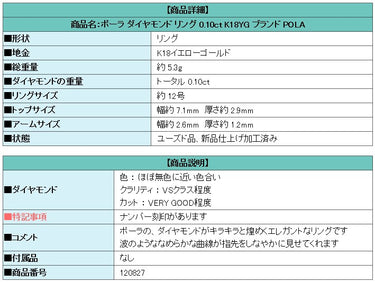 Product name: POLA Diamond Ring 0.10ct K18YG Brand POLA