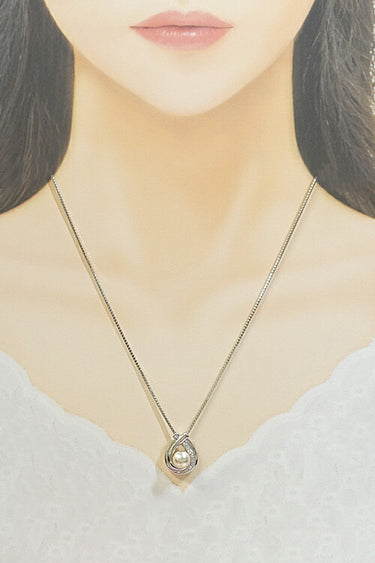 This elegant necklace features a single Akoya pearl set in a motif of curved lines by Paula.