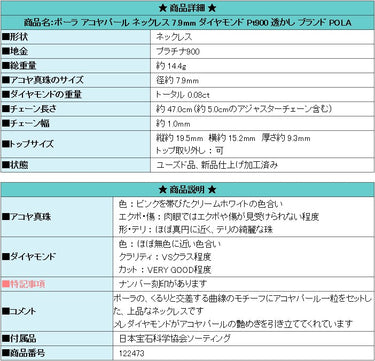 Product name: POLA Akoya pearl necklace 7.9mm diamond Pt900 openwork Brand POLA