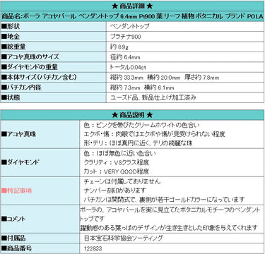 Product name: POLA Akoya pearl pendant top 6.4mm Pt900 Leaf Plant Botanical Brand POLA