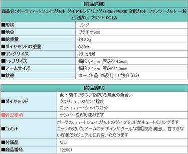 Product name: POLA Heart Shape Cut Diamond Ring 0.30ct Pt900 Deformed Cut Fancy Cut Single Stone Openwork Brand POLA