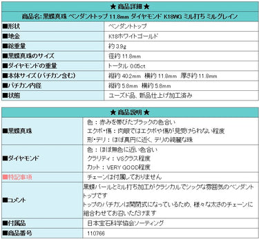 Product name: Black pearl pendant top 11.8mm diamond K18WG milled millgrain