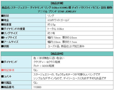 Product name: Star Jewelry Diamond Ring 0.08ct K18WG Butterfly Papillon Insect Animal Brand STAR JEWELRY