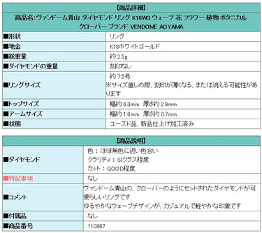 Product name: Vendome Aoyama Diamond Ring K18WG Wave Flower Plant Botanical Clover Brand VENDOME AOYAMA