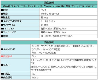 Product name: Star Jewelry Diamond Ring 0.10ct K18WG Thin and delicate Brand: STAR JEWELRY