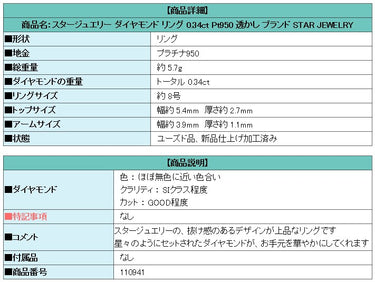 Product name: Star Jewelry Diamond Ring 0.34ct Pt950 Openwork Brand STAR JEWELRY