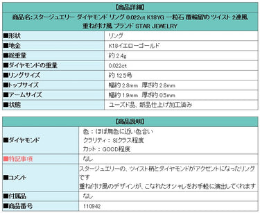 Product name: Star Jewelry Diamond Ring 0.022ct K18YG Single Stone Bezel Setting Twist Double-strand Layered Brand: STARJEWELRY