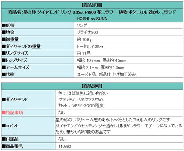 Product name: Hoshi no SUNA Diamond Ring 0.35ct Pt900 Flower Plant Botanical Openwork Brand HOSHI no SUNA