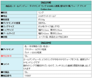 Product name: Golden Dew Diamond Ring K18WG Double-row style Stacked style Wave Brand: Golden Dew