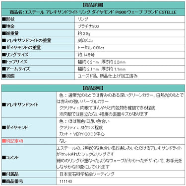 Product name: Estelle Alexandrite Ring Diamond Pt900 Wave Brand ESTELLE