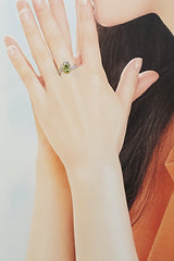 A fairytale-like, classical ring accented with the yellow-green color of grossularite garnet.