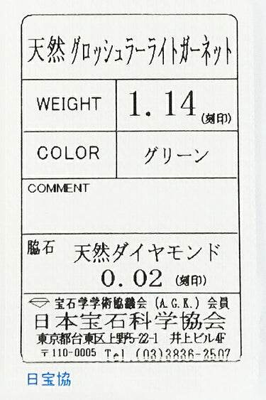 気になることがあったので質問したのですが、すぐ返信があり購入前から安心感がありました。配送も早く、説明通り、鑑定書も付いていて安心しました。今後も入荷をチェックして気にいったものがあれば購入したいと思いました。