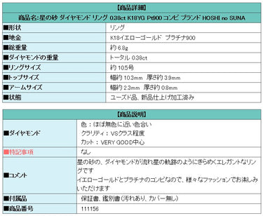 Product name: Hoshi no SUNA Diamond Ring 0.38ct K18YG Pt900 combination brand HOSHI no SUNA