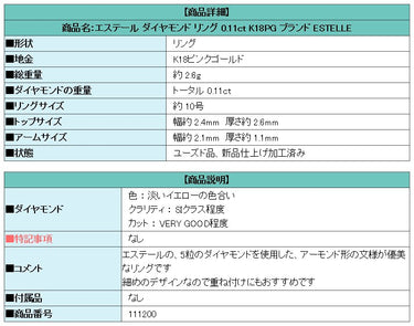 Product name: Estelle Diamond Ring 0.11ct K18PG Brand ESTELLE