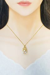 The lustrous Akoya pearls and sparkling diamonds will add a touch of glamour to your chest.