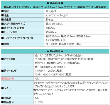 Product name: MIKIMOTO Akoya pearl necklace 6.0mm-6.3mm diamond K18YG Brand MIKIMOTO
