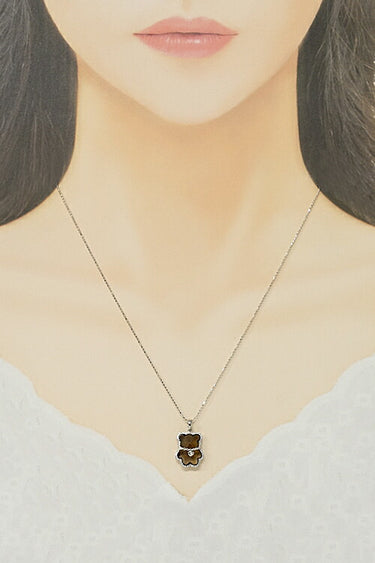 This is a unique necklace featuring a cute and stylish teddy bear made of smoky quartz.