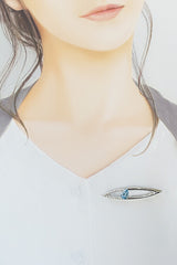 This brooch from Mikimoto has a cool, light blue aquamarine that gives it a dignified look.
