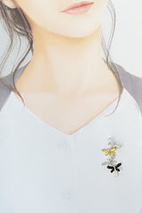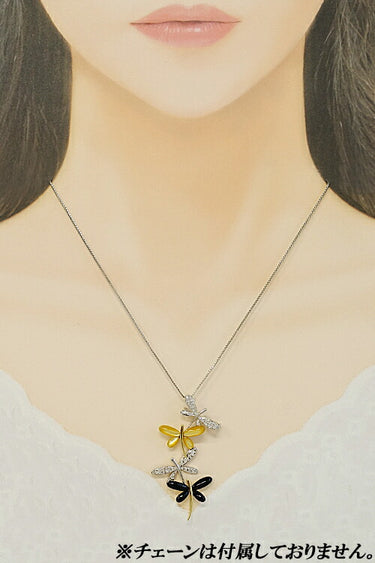 Diamond pendant brooch 0.35ct shell onyx K18WG K18YG dragonfly insect animal 2way | 18K diamond daily use elegant cute stylish [SH112110]