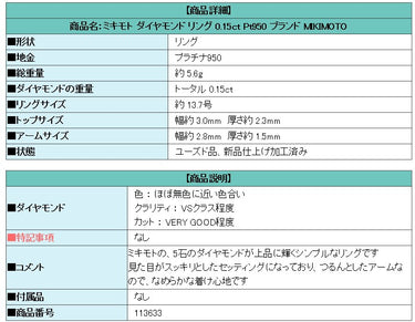 Product name: MIKIMOTO Diamond Ring 0.15ct Pt950 Brand MIKIMOTO