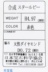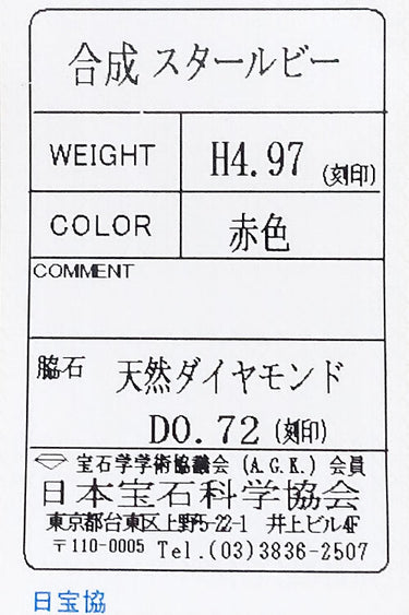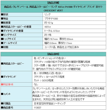 Product name: CRESCENT VERT Recrystallized Star Ruby Ring 4.97ct Pt1000 Diamond Brand Kyocera CRESCENT VERT