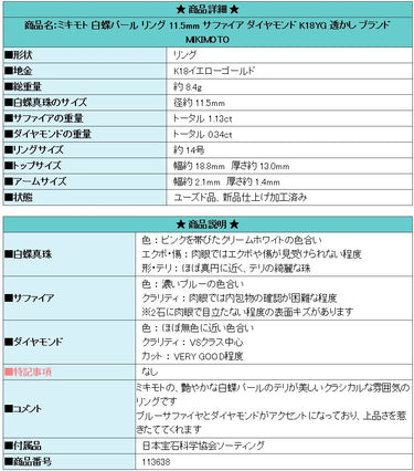 Product name: MIKIMOTO White Pearl Ring 11.5mm Sapphire Diamond K18YG Openwork Brand MIKIMOTO