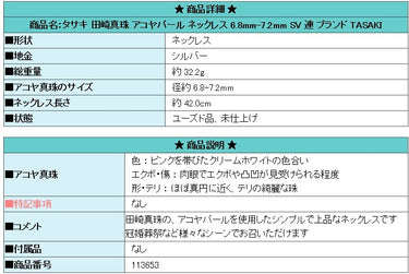 Product name: TASAKI Akoya pearl necklace 6.8mm-7.2mm SV string Brand: TASAKI