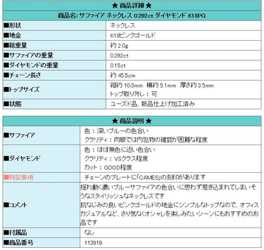 Product name: Sapphire necklace 0.292ct diamond K18PG