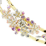 Diamond Necklace 1.002ct Sapphire K18YG Pt900 Sakura Cherry Blossom Flower Plant Botanical Pear-finished Matte Enamel Openwork | 18K Pink Sapphire Diamond Gorgeous [SH113936]