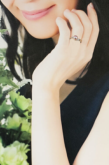 This elegant ring from Mikimoto features Akoya pearls and the delicate sparkle of diamonds.