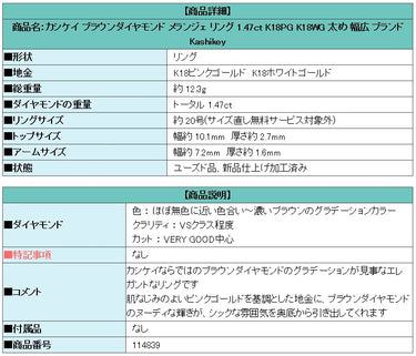 Product name: Kashikey Brown Diamond Melange Ring 1.47ct K18PG K18WG Thick Wide Brand Kashikey