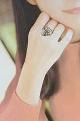 The matte finish on the ring and the shape that splits into two at the top create a playful yet modern look.