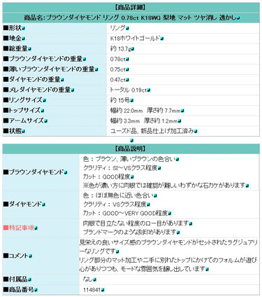 気になることがあったので質問したのですが、すぐ返信があり購入前から安心感がありました。配送も早く、説明通り、鑑定書も付いていて安心しました。今後も入荷をチェックして気にいったものがあれば購入したいと思いました。
