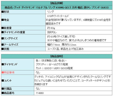 Product name: Gucci Diamond Multiple Ring K18WG G Logo Thick Wide Openwork Brand GUCCI