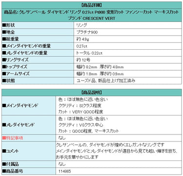 CRESCENT VERT Diamond Ring 0.27ct Pt900 Deformed Cut Fancy Cut Marquise Cut Brand CRESCENT VERT | Diamond Platinum Elegant Luxurious Cute Stylish [Used] [SH114865]