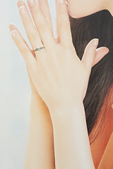 This item is subtly cute, with a ribbon-like top and a design on the prongs of the stone setting.