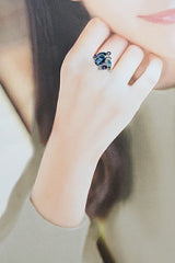 This ring has a cool feel to it, using cool-toned colored stones of various cuts and sizes.