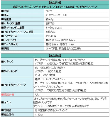 Product name: Topaz ring, diamond, iolite, K18WG, multi-color stone